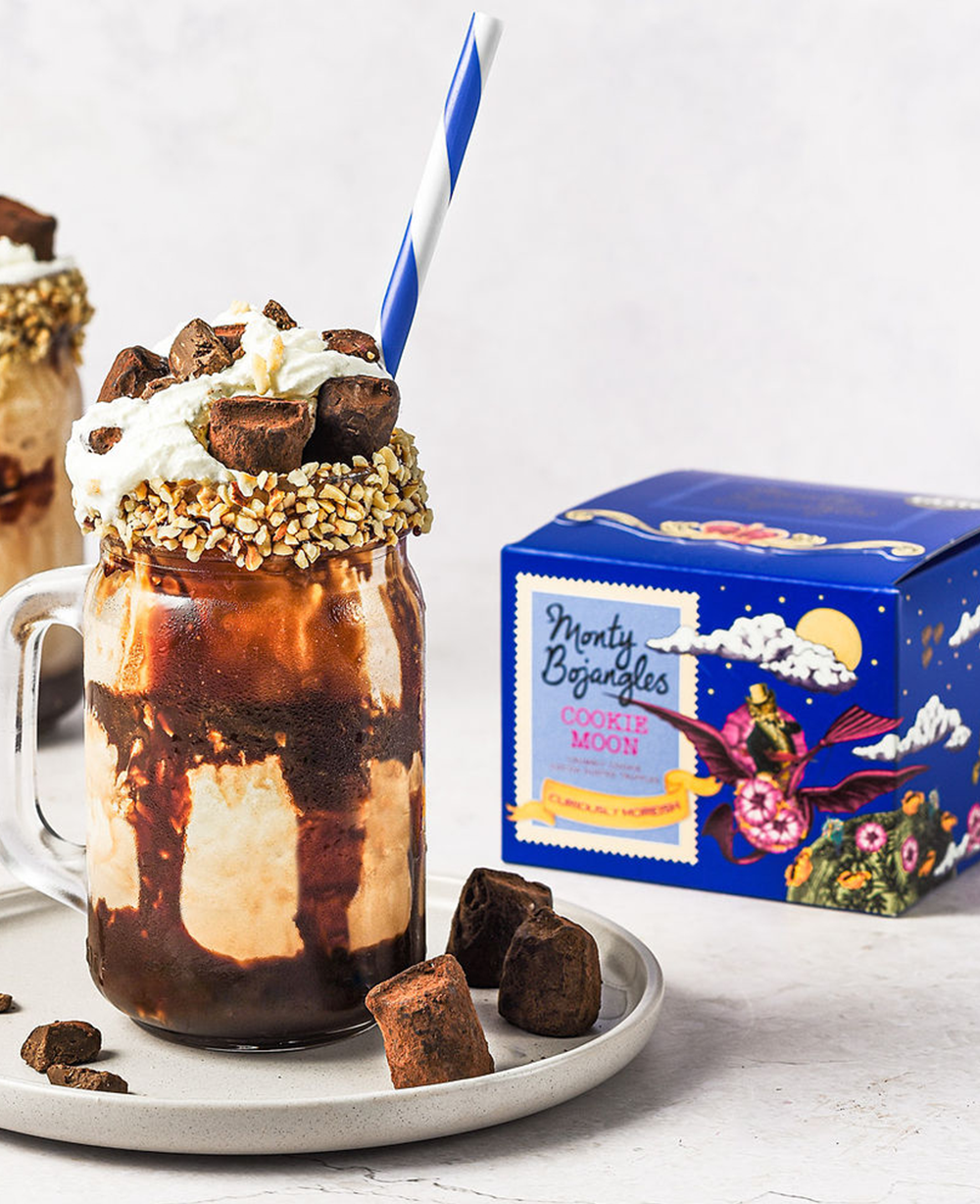Ingredients: Vegetable Oils (Coconut, Palm Kernel), Sugar, Fat Reduced Cocoa Powder, Cookie Pieces (9%) (Chocolate Chips (Cocoa Mass, Sugar, Emulsifier (SOYA Lecithin), Natural Flavouring), Flour (WHEAT), Sugar, Concentrated Butter (MILK), Skimmed MILK Powder, BARLEY Malt, Salt), Whey Powder (from MILK), Cocoa Powder, Emulsifier (SOYA Lecithin).